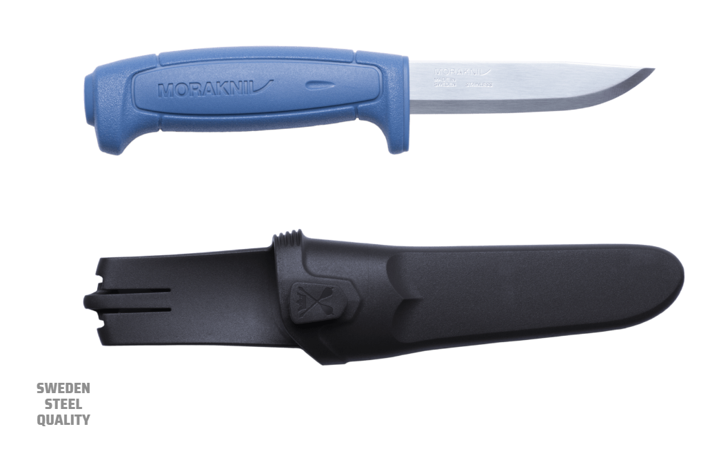 Morakniv Basic je nož idealan za obavljanje širokog spektra poslova. Inicijalno osmišljen za majstore, stekao je veliku popularnost i među kamperima i ljubiteljima drugih outdoor aktivnosti. Drška je ergonomski dobro oblikovana i ne kliza u rukama a sečivo je proizvedeno od kvalitetnog švedskog nerđajućeg čelika i dugo zadržava oštrinu. Sintetička futrola se lako kači za kaiš i opremljena je Morakniv Smart Button sistemom (dozvoljava kačenje dodatnih noževa). Kompanija Morakniv sve svoje noževe proizvodi u gradu Mora u Švedskoj, počev od 1891. godine.
