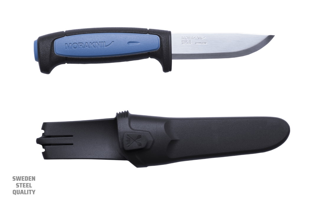 Morakniv Pro je nož osmišljen i dizajniran za majstore, ali je u međuvremenu stekao veliku popularnost i među kamperima i ljubiteljima drugih outdoor aktivnosti. Drška je ergonomski dobro oblikovana i ne kliza u rukama a sečivo je proizvedeno od kvalitetnog švedskog nerđajućeg čelika i dugo zadržava oštrinu. Sintetička futrola se lako kači za kaiš i opremljena je Morakniv Smart Button sistemom (dozvoljava kačenje dodatnih noževa). Kompanija Morakniv sve svoje noževe proizvodi u gradu Mora u Švedskoj, počev od 1891. godine.