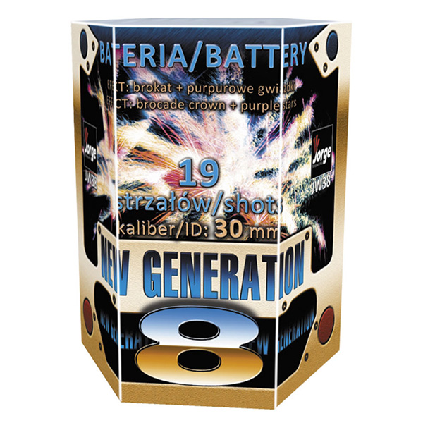 EFEKTI: 19 RAKETA, LJUBIČASTO-BELO RASPRSKAVANJE SA ZLATNIM PUCKETANJEM.